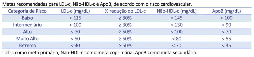 Estão destacados a seguir, os apontamentos referentes à coleta do perfil lipídico, recomendações sobre o cálculo do colesterol LDL (LDL-c) e as atualizações sobre metas de LDL-c, colesterol não-HDL (não-HDL-C) e ApoB e a recomendação da dosagem da Lp(a).